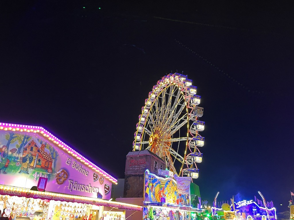 Mit seinen beeindruckenden Maßen von 25 Metern Breite, 27 Metern Tiefe und einer Höhe von 50 Metern, bietet das Willenborg Riesenrad nicht nur eine imposante Erscheinung, sondern auch einen unvergleichlichen Blick über das gesamte Festgelände und darüber hinaus. Die Größe und die sanfte Bewegung des Rades machen es zu einem ruhigen Zufluchtsort inmitten des bunten Treibens des Festes.