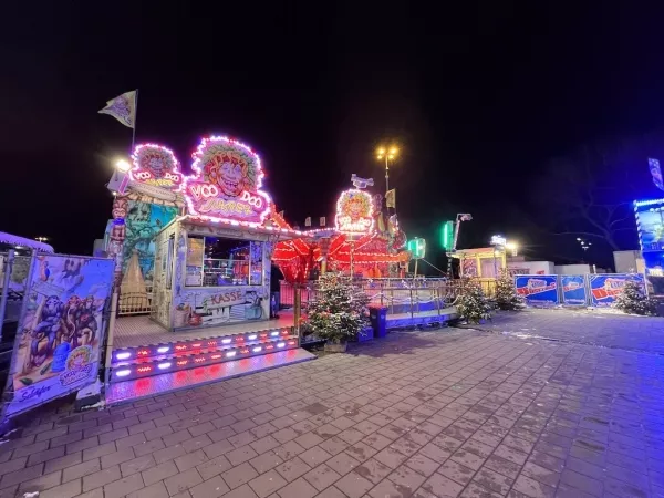 Der "Voodoo-Jumper" ist eine fesselnde Attraktion auf dem Hamburger Dom, die Besucher mit seiner einzigartigen Mischung aus traditionellem Karussellspaß und modernen, aufregenden Elementen in den Bann zieht. Mit einer Front von 22 Metern, einer Tiefe von 20 Metern und einer Höhe von 9,65 Metern bietet der "Voodoo-Jumper" eine beeindruckende Präsenz und zieht die Blicke der Besucher schon von Weitem auf sich.